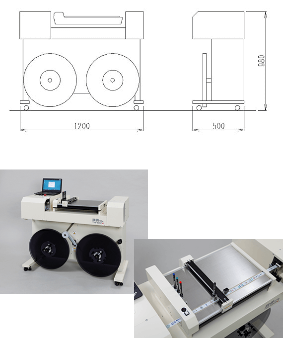 | 対応定規 | 幅19mm 厚さ0.3mm シロツヤ (一巻約440m 重量約20kg(最大)) |